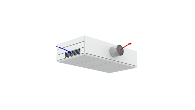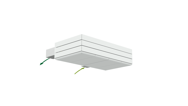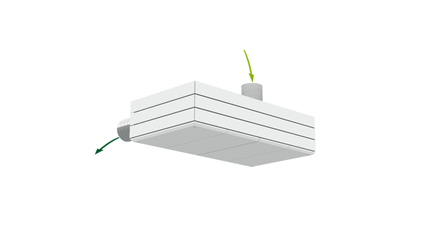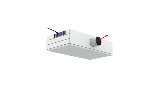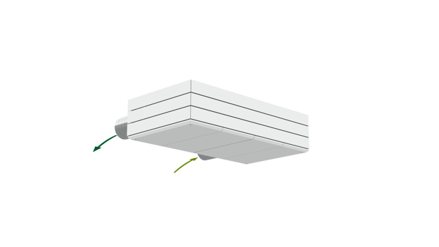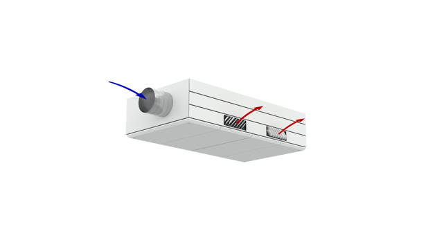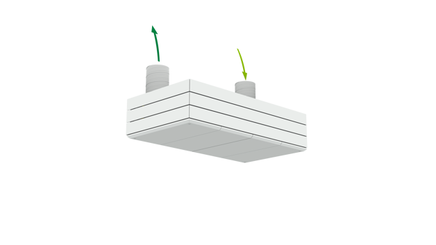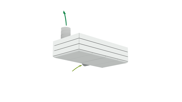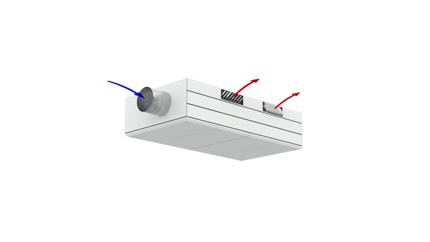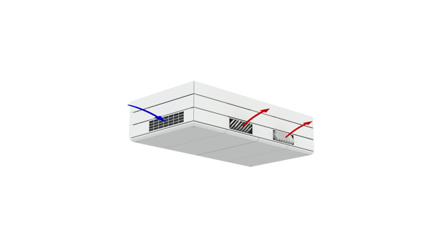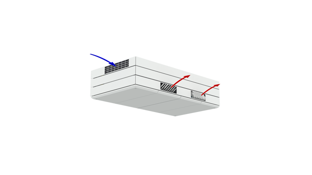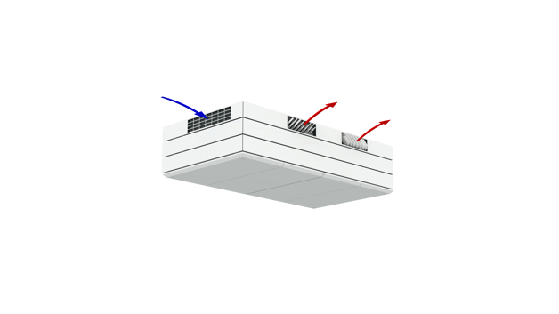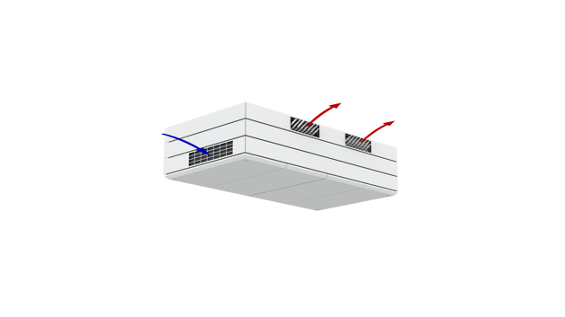 Das Adaptive-Airflow-Prinzip nutzt die Decke und die strömungstechnischen Prinzipien aus, um das Zuluftmuster zwischen größeren und kleineren Luftmengen zu variieren. So kann eine konstante Wurfweite in einem großen Intervall aufrecht erhalten werden, und Zugluftprobleme werden vermieden.
