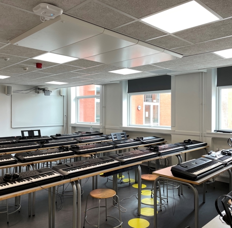 Das AM 1000 ist eine konkurrenzfähige Lösung, die für die Belüftung von Klassenräumen mit hoher Personenauslastung über längere Zeiträume hinweg konzipiert ist. Sie kann natürlich auch überall dort angewandt werden, wo hohe Ansprüche an Komfort und ein gutes Raumklima vorliegen. Das AM 1000 entspricht den aktuellen Anforderungen an Luftqualität und ein geringes Geräuschniveau. In der Praxis bedeutet dies ca. 950 m3/h und 30 dB(A) vom Lüftungsgerät. Gleichzeitig hat das AM 1000 eine Wärmerückgewinnung von über 80%. Kombiniert mit einem geringen Stromverbrauch, der einem SFP-Wert von ca. 700 J/m3 entspricht, ist das AM 1000 eine besonders energieeffiziente und geräuscharme Lüftungslösung. Mit der eingebauten aktiven Schalldämpfung werden vor allem die niederfrequenten Töne gedämpft, die normalerweise ein großes Dämpfareal erfordern. In das AM 1000 sind zudem mehrere Lautsprecher und Mikrofone integriert, die die niederfrequenten und störenden Geräusche durch das Aussenden von "Gegentönen" entfernen.