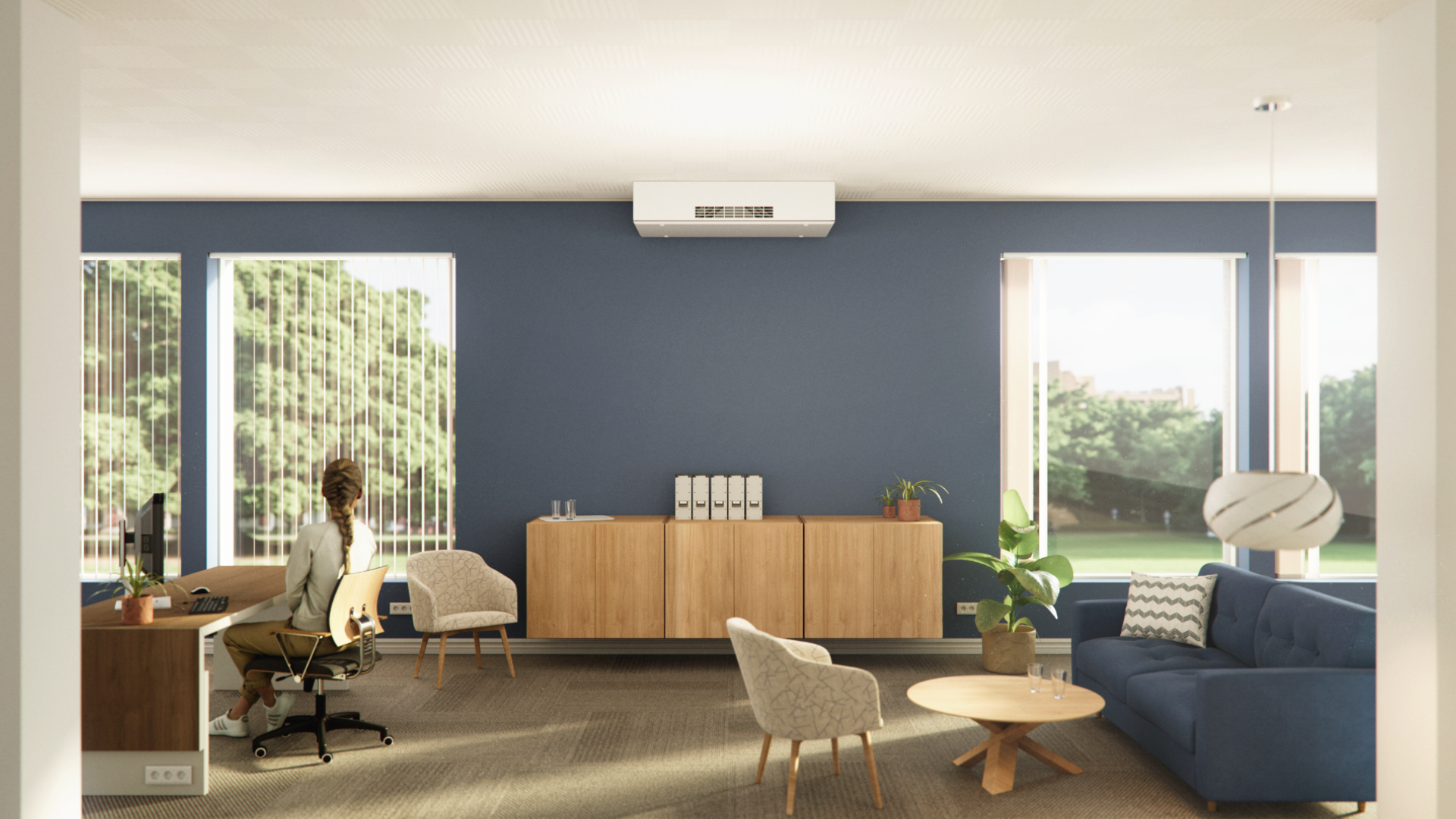 Das AM 150 ist ein Dezentrale Lüftungsanlage mit Wärmerückgewinnung, das besonders für Büroräume für 1-2 Personen sowie für kleinere Gruppenräume geeignet ist. Mit anderen Worten: für kleine Räume, in denen ein gutes und komfortables Raumklima erforderlich ist, das zum Wohlbefinden beitragen kann.
