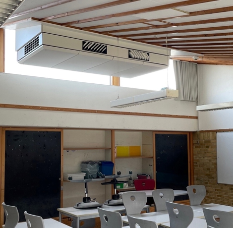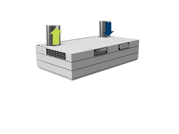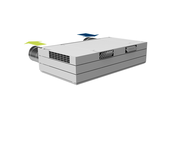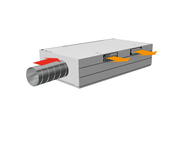Das AM 1000 ist eine konkurrenzfähige Lösung, die für die Belüftung von Klassenräumen mit hoher Personenauslastung über längere Zeiträume hinweg konzipiert ist. Sie kann natürlich auch überall dort angewandt werden, wo hohe Ansprüche an Komfort und ein gutes Raumklima vorliegen. Das AM 1000 entspricht den aktuellen Anforderungen an Luftqualität und ein geringes Geräuschniveau. In der Praxis bedeutet dies ca. 950 m3/h und 30 dB(A) vom Lüftungsgerät. Gleichzeitig hat das AM 1000 eine Wärmerückgewinnung von über 80%. Kombiniert mit einem geringen Stromverbrauch, der einem SFP-Wert von ca. 700 J/m3 entspricht, ist das AM 1000 eine besonders energieeffiziente und geräuscharme Lüftungslösung. Mit der eingebauten aktiven Schalldämpfung werden vor allem die niederfrequenten Töne gedämpft, die normalerweise ein großes Dämpfareal erfordern. In das AM 1000 sind zudem mehrere Lautsprecher und Mikrofone integriert, die die niederfrequenten und störenden Geräusche durch das Aussenden von "Gegentönen" entfernen.