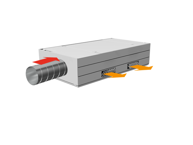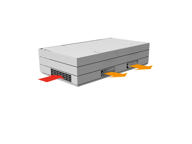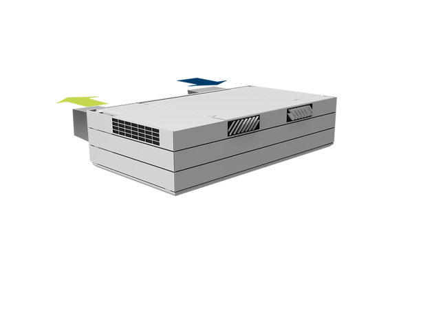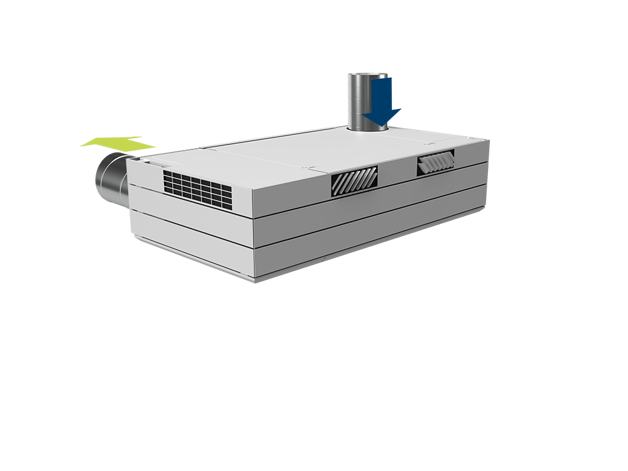 Deshalb verfügt das AM 1000 über eine automatisch justierbare Zuluft - den so genannten Adaptive Airflow™. Ein zum Patent angemeldeter Zuluftdiffusor am AM 1000 passt das Zuluftmuster an Luftmenge und Raumform an.